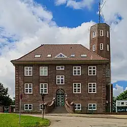 Die verklinkerte ehemalige Wetterwarte Cuxhaven aus den 1920er Jahren besteht aus einem dreigeschossigen Verwaltungsgebäude mit Walmdach und einer prägenden Freitreppe und einem sechsgeschossigen achteckigen Turm.