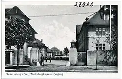Ferner waren in Frankenberg seit 25. Januar 1936 die Heeresfachschule Verwaltung und Wirtschaft, die Heeresstandortverwaltung, das Heeresverpflegungsamt sowie ab 1. Februar 1938 das Wehrmeldeamt eingerichtet. Das Landesschützenbataillon V/IV bildete sich in Frankenberg am 26. August 1939 und wurde am 16. März 1940 als I./Infanterieregiment 655 in die 379. Infanteriedivision eingegliedert. Das Landesschützenersatzbataillon 4 wurde hier am 19. Februar 1940 aufgestellt, jedoch am 9. September 1940 nach Glauchau verlegt. Schließlich kam die Veterinärersatzabteilung 4 am 9. Oktober 1942 aus Bautzen und gliederte am 10. April 1943 zur Veterinärersatz- und Ausbildungsabteilung 4 um.[5]