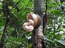 Sie kommt nur im immerfeuchten tropischen Regenwald vor in tiefen bis mittleren Höhenlagen.