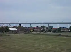 Die Neubaustrecke Erfurt–Leipzig/Halle führt über die 2668 m lange Unstruttalbrücke nördlich am Ort vorbei.