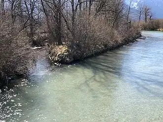 ![]() Mündung der Wetzsteinlaine (links) in die Loisach | ||