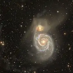| M 51 • NGC 5194 • UGC 8493 • PGC 47404 • CGCG 246-008 • MCG +8-25-12 • IRAS 13277+4727 • 2MASX J13295269+4711429 • Arp 85 • VV 403 • GC 3572/3574 • H I 186 • h 1622/1623 • KPG 379 • Bode 25 | |