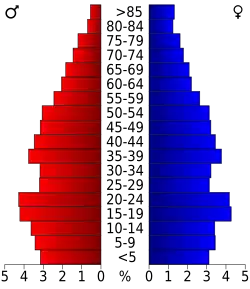 24,4 Prozent der Bevölkerung waren unter 18 Jahre alt, 12,8 Prozent zwischen 18 und 24, 27,2 Prozent zwischen 25 und 44, 21,9 Prozent zwischen 45 und 64 und 13,8 Prozent waren 65 Jahre oder älter. Das Durchschnittsalter betrug 35 Jahre. Auf 100 weibliche kamen statistisch 95,2 männliche Personen und auf 100 Frauen im Alter von 18 Jahren und darüber kamen durchschnittlich 92,9 Männer.