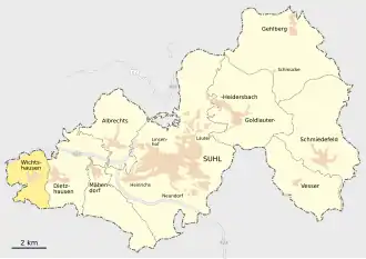 - ↑ a b Ortsteile von Suhl: zu Wichthausen runterscrollen. Abruf am 18. Juni 2025.