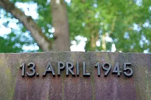 Der Gedenkstein aus Granit enthält die Inschrift „AM 13. APRIL 1945 STARBEN HIER FÜR ÖSTERREICH“ sowie die Namen der 13 verstorbenen Personen.