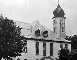 Trotz allem blieben rund 80 % der Einwohner von Greiffenberg Lutheraner.[4] Für diese wurde aus der seit etwa 1526 evangelischen Kirche im oberen Ortsteil (Ober) Wiesa 1653 eine Zufluchtskirche.[2] Im Jahre 1669 wurde unmittelbar an der Grenze zum schlesischen Fürstentum Jauer an der Flussbiegung des Queis[7] auf dem so genannten Kirchenplan die evangelische Grenzkirche Nieder Wiesa errichtet und geweiht, vor allem für Bewohner der Stadt Greiffenberg. Zur Kirche hielten sich sieben schlesische Städte und 87 Dörfer bis auf sieben Meilen Entfernung.[8] Um 1720 gingen auch zahlreiche Böhmische Exulanten aus der Umgebung wie Stöckigt (bis 1910 Stöckigt-Liebenthal) und des sächsischen Gebhardsdorf in die Grenzkirche nach Nieder Wiesa, weil dort der „eifrige“ Prediger Schwendler zu den „neuen Böhmen“ über die Erweckung sprach.[9] 1730 bis 1733 wurde die Kirche durch eine steinerne ersetzt und in Kreuzform erbaut. Nach 1741 ging der rege Zuspruch zurück, der Kirchsprengel reduzierte sich. Die Parochie Nieder Wiesa gehörte zur Diözese Löwenberg II.