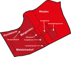 Die Wieden war bis 1850 eine eigenständige Gemeinde und ist heute ein Stadtteil Wiens im gleichnamigen 4. Wiener Gemeindebezirk Wieden, reicht aber auch in den 1861 abgespaltenen Bezirk Margareten hinein. In beiden Bezirken ist von der Stadt Wien eine bauliche Schutzzone unter dem Namen Alte und Neue Wieden definiert.[1][2]