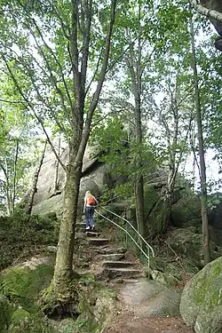 Unmittelbar benachbart ist das Haus Wiedenfelsen, ein ehemaliges Hotel und Kurhaus. Es gehört als Wohnplatz zu Bühlertal-Obertal.[2] Daneben liegt ein beliebter Wanderparkplatz zu den Gertelbachfällen, der Bühlerhöhe, der Freiluft-Kunsteisbahn Wiedenfelsen und anderen Zielen. Auf den Felsen selbst führt ein kurzer Weg vom Parkplatz, der an einem Aussichtspunkt über das ganze Bühlertal endet. An den Felsen gibt es mehrere Kletterrouten der Schwierigkeitsgrade V–VII.[3]