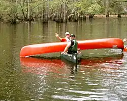 Bei Zweierkanus können sich die Kanuten gegenseitig assistieren, indem der eine das Boot stabilisiert während der andere wiedereinsteigt.