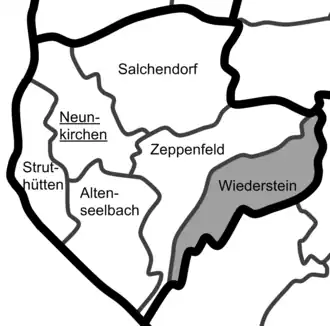 ![]() Lage des Ortes Wiederstein innerhalb der Gemeinde Neunkirchen.