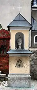 - Bildstock an der Kirche mit einer Figur des heiligen Johannes Nepomuk und einem alten Kreuz