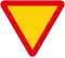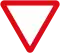 | Vorfahrt gewähren | Umgedrehtes gleichseitiges Dreieck | weiß oder gelb | rot | 0,9 m / 0,6 m | - | |