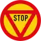 | Rund mit Dreieck innerhalb | weiß oder gelb | rot | 0,9 m / 0,6 m | "Stop"† in schwarz oder dunkelblau | ||