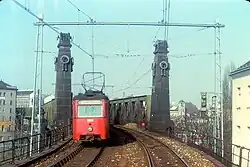 Die Wiener Elektrische Stadtbahn,[6] abgekürzt WESt, W.E.St., Wr.-E.-St. oder W.E.ST., im Volksmund kurz Stadtbahn genannt,[7] war ein öffentliches Nahverkehrsmittel in der österreichischen Hauptstadt Wien, das unter dieser Bezeichnung von 1925 bis 1989 existierte. Das anfänglich noch als Eisenbahn klassifizierte System ging aus der 1898 eröffneten, von Otto Wagner gestalteten und mit Dampflokomotiven betriebenen ursprünglichen Wiener Stadtbahn hervor, die teilweise auch Vororte bediente.