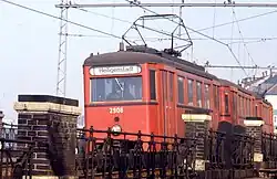 Mit der Elektrifizierung endete ferner die Beförderung von Aufgabegepäck in speziellen Gepäckabteilen, mit dem nicht mehr praktizierten Übergang auf die Lokalstrecken der Staatsbahn benötigten die elektrischen Stadtbahnzüge außerdem keine Toiletten mehr. Entsprechend der Konzeption als Straßenbahnwagen besaßen die neuen Triebwagen zur Abgabe von Warnsignalen nur die übliche fußbediente Warnglocke. Eine Druckluftpfeife war, trotz vorhandener Druckluft, nicht vorgesehen.[36] Auch das, bei der Dampfstadtbahn bereits vorhandene, Dreilicht-Spitzensignal entfiel zugunsten eines einfachen, mittig angeordneten, Scheinwerfers. Eine zusätzliche Lichtquelle ergab sich durch die beleuchtete Liniensignalanzeige auf dem Dach. Beim Zugschlusssignal war es ähnlich. Statt den bei der Dampfstadtbahn üblichen drei roten Laternen, besaß die elektrische Stadtbahn bis 1946/1947 nur eine rote Dachsignalscheibe. Danach wurde die rote Schlussscheibe wegen der aufwändigen Manipulation beim Wenden in Stockgleisen auf den Scheinwerfer aufgesteckt.[38]