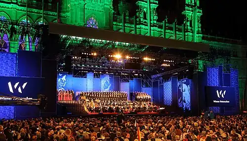 2015 fand die Eröffnung erstmals mit dem Sommernachtskonzert der Wiener Philharmoniker unter der Leitung von Zubin Mehta im Schlosspark von Schönbrunn statt.[8][9] Grund für die Verlegung vom Rathausplatz war der von 19. bis 23. Mai 2015 stattfindende Eurovision Song Contest 2015.[10]