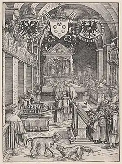 Wahrscheinlich gab es bereits unter seiner Regentschaft eine deutsche und eine französische Kantorei sowie eine Gruppe von Bläsern und Paukern.[7] Auch der ungarische König Matthias Corvinus, der von 1485 bis 1490 Wien besetzt hielt, verfügte über eine deutsche und eine französische Kantorei in Wien.[7]