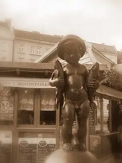 Der Fischerbuberl-Brunnen auf dem Wiener Markt stammte ursprünglich vom Viktualienmarkt, wo er dem Neubau der Schrannenhalle weichen musste. Das bronzene Brunnenbüberl von Ignatius Taschner wurde zuerst so montiert, dass es den Blick zum Isarhang richtete. Weil ihnen dabei aber der Knabe den nackten Po entgegenstreckte, beschwerten sich die Markthändler. Also drehte das Baureferat die Figur. Dies wiederum missfiel den Stadtviertel-Politikern, denn jetzt liefen die Passanten geradewegs auf den nackten Hintern zu. Also wurde weiter gedreht, bis es dann doch irgendwie passte....