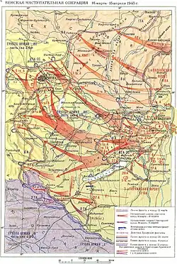 Die in Richtung Wien angreifenden sowjetischen Armeen verfügten über etwa 400.000 Mann, 400 Panzer und 7.000 Sturmgeschütze, Granatwerfer und Raketenwerfer. Es gibt deutliche Hinweise darauf, dass Stalin den Oberbefehlshaber der 3. Ukrainischen Front, Marschall Tolbuchin als absehbaren Sieger von Wien gegenüber Malinowski, dem fähigeren Kommandeur der 2. Ukrainischen Front, bevorzugte, da ihm dieser als potentieller politischer Konkurrent zu mächtig erschien.