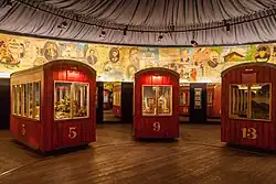 Noch 1957, als der Eigentümer aus Anlass des 60-Jahr-Jubiläums des Fahrgeschäfts alte Waggons austauschen ließ, wurde wegen zu schwacher Frequenz an der Zahl von 15 Waggons festgehalten.[20] Das Riesenrad mit 15 Waggons wurde ein Symbol des Wiederaufbaus. Seit 2002 befindet sich beim Riesenrad eine „Panoramamuseum“ genannte Ausstellungshalle mit acht nachgebauten Waggons, in denen die Geschichte des Wiener Praters dargestellt wird.