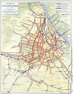 Plan der Dampftramway-Gesellschaft vormals Krauss & Comp. von 1890, noch ohne die Vorortelinie -