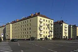 Diese städtische Wohnhausanlage mit 162 Wohnungen wurde 1931/32 von Carl Witzmann errichtet. Es handelt sich um einen Straßenhof mit Bänder- und Balkongliederung.