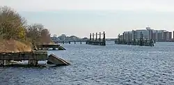 Am 6. Juni 1956 machten die ersten vier von den USA wieder freigegebenen Minenräumboote an der instandgesetzten Wiesbadenbrücke fest.[1] Es folgten 1958 das 2. Landungsgeschwader und am 4. Juli 1958 die ersten Schnellboote des 2. Schnellbootgeschwaders. Bis 1964 hatten hier auch die Schiffe des Flottendienstgeschwaders und bis zum Umzug in den neu gebauten Marinestützpunkt Heppenser Groden die neuen Küstenminensuchboote des 4. und 6. Minensuchgeschwaders ihren Liegeplatz. Der Bootshafen für die Barkassen und Dienstsegelboote des Marinestützpunktkommandos war von 1956 an auf der Wiesbadenbrücke beheimatet.[5]