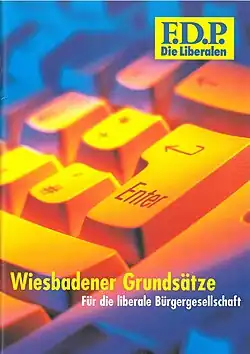 - ↑ Programm der Freien Demokratischen Partei „Wiesbadener Grundsätze. Für die liberale Bürgergesellschaft“ (.pdf) auf der Webseite des Archivs des Liberalismus.