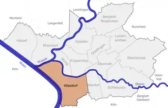 Wiesdorf ist ein Stadtteil von Leverkusen. Der Stadtteil hat auf einer Fläche von 986 ha[2] 18.363 Einwohner (31. Dezember 2023), die Bevölkerungsdichte beträgt 1862 Einwohner pro km².[1]