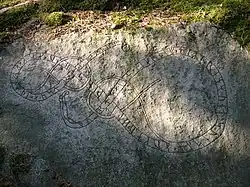 - ↑ Der bereits erwähnte Stein SM 42 mit einem Kreuz.