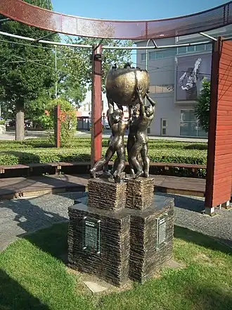Das Wikipedia-Denkmal (polnisch Pomnik Wikipedii) ist eine etwa 1,70 Meter hohe, bronzefarbene Plastik des Bildhauers Mihran Hakobjan in Słubice, Polen. Es hat die Form einer nach oben offenen Weltkugel als Puzzle, das Logo von Wikipedia, welches von zwei Frauen und zwei Männern[1] getragen wird. Die Aktfiguren stehen auf einem Sockel, der einen Bücherstapel darstellt. Die Plastik wurde aus wetterbeständigem Kunststoff angefertigt.[2]