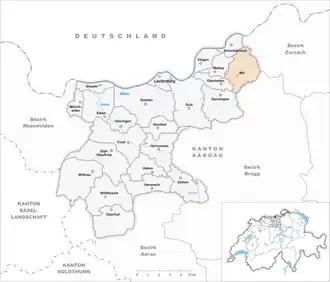 Die Fläche des ehemaligen Gemeindegebiets betrug 771 Hektaren, davon waren 238 Hektaren bewaldet und 41 Hektaren überbaut. Die höchste Stelle des Gemeindegebietes lag knapp unterhalb des Gipfels der Oberen Rüti auf 600 Metern, die tiefste Stelle auf 355 Metern am Etzgerbach. Nachbargemeinden waren Schwaderloch im Nordwesten, Leibstadt im Nordosten, Leuggern und Mandach im Osten, Hottwil im Südosten, Gansingen im Süden, Oberhofen im Südwesten sowie Mettau im Westen.