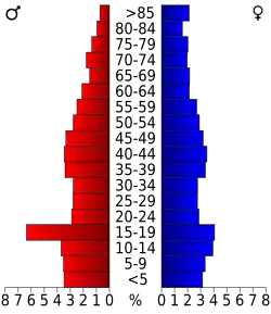 27,9 Prozent der Bevölkerung war unter 18 Jahre alt, 9,5 Prozent zwischen 18 und 24, 24,8 Prozent zwischen 25 und 44, 21,6 Prozent zwischen 45 und 64 und 16,2 Prozent waren 65 Jahre alt oder älter. Das Durchschnittsalter betrug 36 Jahre. Auf 100 weibliche Personen kamen 98 männliche Personen und auf 100 Frauen im Alter von 18 Jahren oder darüber kamen 91,7 Männer.