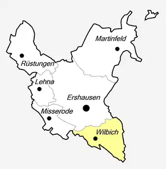 Nordwestlich von Wilbich liegt der Ort Ershausen, nordöstlich Großbartloff und im Süden Geismar.