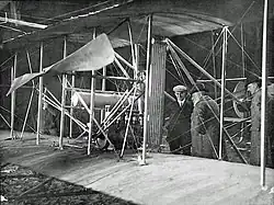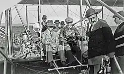 Wright (r.) in einer seiner Flugmaschinen