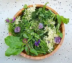 - Wildgemüse oder in Abgrenzung zu diesem für Kräuter, die eher nur in geringerer Menge in der Küche verwendet werden,[2]
