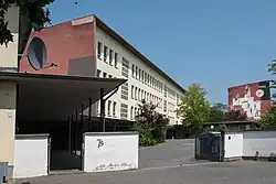 Zwischen den einzelnen Schulgebäuden lagen die nach Altersgruppen getrennten Schulhöfe. Die Wilhelm-Leuschner-Schule zeigt eine starke Kontrastierung langer, offener Umgangshallen auf schlanken Stützen und Flachbauten mit langgestreckten, in der Vertikale betonten Gebäudezügen. Die kubischen Bauwerke und deren Lochfassaden mit reichem Formenwechsel bilden ein künstlerisches Gesamtwerk. Die Fassadenmalerei an der Stirnseite eines Klassentrakts gestaltete Ernst Vogel. m Foyer befinden sich Sgraffito-Wandbilder in farbigem Putz von Eberhard Schlotter.