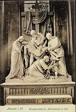In Rom verfertigte er 1849 eine Pietà, die sich im St.-Paulus-Dom von Münster befand und in kleineren Nachbildungen anderer Bildhauer verbreitet ist, von der er aber auch selbst Kopien anfertigte. Sie wurde im Zweiten Weltkrieg weitgehend zerstört, wie auch sein umfangreichstes Werk, eine aus fünf überlebensgroßen Figuren bestehende Kreuzabnahme aus Carrara-Marmor, die 1858 im Dom zu Münster aufgestellt wurde. Fragmente beider Werke, im Wesentlichen die Köpfe, sind heute im Obergeschoss der Domkammer ausgestellt. Eine Nachbildung der Pietà steht in der nördlichen Turmkapelle des Doms. Die letzte von ihm selbst 1875 in Marmor angefertigte Kopie der Pietà befindet sich in einer eigens dafür errichteten Marienkapelle in Lenhausen (Gemeinde Finnentrop, Sauerland).[2]