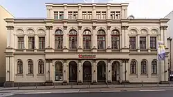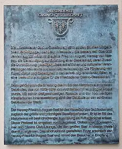 Eine Gedenktafel für Bogler hängt am Wiesbadener Casino-Gebäude, Friedrichstraße 22.