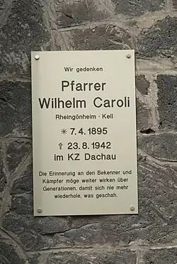 In der Gedächtniskapelle in Kottenheim wird neben den Verstorbenen der beiden Weltkriege und den ermordeten Mitgliedern der jüdischen Familien Gottschalk und Levy auch an Pfarrer Wilhelm Caroli gedacht.[1]