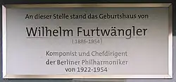 Wilhelm Furtwängler wurde 1886 als Sohn des Professors für Klassische Archäologie Adolf Furtwängler und dessen Frau Adelheid (geborene Wendt, Tochter von Gustav Wendt) am Nollendorfplatz in Schöneberg geboren, das erst 1920 Berlin angegliedert wurde.