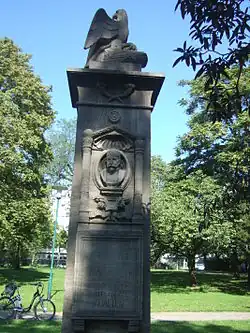 - 1924 zu seinen Ehren anlässlich des in Darmstadt stattfindenden 27. Deutschen Landwirtschaftlichen Genossenschaftstages ein vom Münchner Bildhauer Karl Killer geschaffenes Denkmal errichtet. Es befand sich ursprünglich neben dem ehemaligen Verbandsgebäude in der Sandstraße 36 in Darmstadt. Das im Zweiten Weltkrieg schwer beschädigte Monument wurde 1956 erneuert. Es befindet sich heute am nördlichen Kopfende der Albert-Schweitzer-Anlage, in der Nähe der Rheinstraße, Ecke Hindenburgstraße.[18]