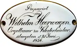 Mit seinen Mitarbeitern führte Heerwagen Neubauten, Umbauten und Reparaturen aus. Auch die Orgel in Klosterhäseler stammt aus seiner Werkstatt. Sie wurde 1871 von August und Emilie von Haeseler als Einlösung eines Gelübdes für die gesunde Rückkehr ihrer Söhne aus dem Krieg gegen Frankreich gestiftet.