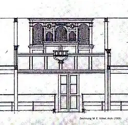 II/P | 18 | → OrgelNur der Prospekt erinnert noch an den Erbauer der Vorgängerorgel. 1933 Ersatz der Herbrig-Orgel durch ein neues Werk der Gebr. Jehmlich, Dresden. |