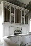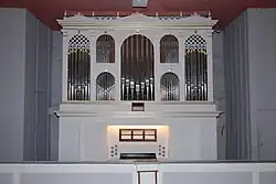 II/P | 22 | 1884 nach Lohma/Thüringen durch Carl Eduard Jehmlich umgesetzt. 1963 Begutachtung durch den Denkmalpfleger Dähnert: „...da das Werk selbst ... sehr dauerhaft gearbeitet ist, sollte es nicht abgebrochen werden ... 7 Felder wohl seit 1917 leer und mit schwarzen Tuch bespannt ... Die noch erhaltenen Stimmen sind im großen und ganzen klanglich nicht schlecht.“ Die Orgel ist seit den 1980ern nicht mehr gespielt worden. |