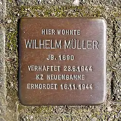 Müller starb im November 1944 im KZ Neuengamme. Wenngleich auch die offizielle Angabe der Todesursache auf „Lungenentzündung“ lautete, so wurde er vermutlich ermordet. Kameraden berichteten, dass er aufgrund seines offenen Beines zu Beginn seiner Haft in Neuengamme in der Sanitätsbaracke abgesondert wurde, was bereits als Todesurteil galt. Die Mülheimer Polizei bescheinigte der hinterbliebenen Familie nach dem Krieg, dass Müller „soweit in Erfahrung gebracht nicht an einer Krankheit im Lager verstorben, sondern wie so viele umgebracht worden“ sei.