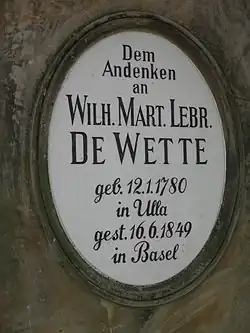 - ↑ Hans-Peter Mathys, Klaus Seybold (Hrsg.): Wilhelm Martin Leberecht de Wette. Ein Universaltheologe des 19. Jahrhunderts (= Studien zur Geschichte der Wissenschaften in Basel. Neue Folge, Band 1). Schwabe, Basel 2001, ISBN 3-7965-1743-9.