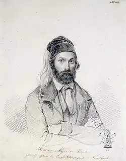 Aufgrund seiner angegriffenen Gesundheit, aber auch aus künstlerischen Gründen reiste er im Frühjahr 1842 über München durch Tirol nach Triest. Während des Aufenthaltes dort unternahm er einen Abstecher nach Görz an den Hof der vertriebenen Bourbonen. Durch Empfehlungsschreiben und in seiner Eigenschaft als ehemaliger Gardeoffizier der Schweizergarde, erhielt er Kontakt zum Herzog von Angoulême und Henri d’Artois, Herzog von Bordeaux, bei denen er Aufnahme fand und die ihm weitere Empfehlungen ausstellten. Er reiste weiter nach Venedig, dort machte er die Bekanntschaft mit den Künstlern Aurèle Robert und dem Dichter Heinrich Wilhelm Stieglitz. Von da aus setzte er seine Reise nach Ferrara und Bologna bis nach Ravenna fort. Mitte Juni 1842 kam er in Rom an, aber aufgrund des dortigen Sommerklimas hielt er sich jedoch nur kurze Zeit in der Stadt auf und reist weiter nach Neapel und setzte am 8. Juli 1842 nach Palermo über. Dieser erste Aufenthalt in Palermo dauerte vier Monate, eine Bleibe fand er bei seinem Landsmann Heinrich Hirzel, der Bücher über Italien verfasste. Im Spätherbst 1842 kehrte Wilhelm Meyer nach Rom zurück, dort blieb er bis Mai 1843, dann unternahm er gemeinsam mit der Familie Rougemont aus dem Kanton Neuenburg eine Reise um Sizilien herum nach Malta, hierzu ging die Reise von Palermo über Messina nach Catania und Syrakus und dann wieder zurück nach Palermo. Dort erhielt er im Juli 1844 Besuch vom Bayrischen König Ludwig I., der ihn in seinem Atelier besuchte und ein Bild kaufte.[5] Anschliessend fuhr Wilhelm Meyer nach Venedig, um dort weitere Malstudien zu betreiben, den Herbst verbrachte er in Florenz und von da aus fuhr er wieder nach Rom.