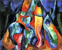 - 1911: Die Holzarbeiter, Tempera auf Pappe, Fragment 60,2 × 56,4 (ursprünglich 123 × 87 cm), Städtische Galerie im Lenbachhaus, München