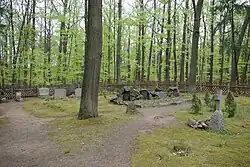 In der Nähe des Forsthauses Siehdichum ließ Wilhelm Reuter 1891 nach dem Tod seiner ersten Frau Marie eine Grabstätte anlegen.[9] Hier wurde 1902 auch seine Tochter Hedwig Eyber, Frau des Forstrats Karl Eyber, bestattet, 1913 Wilhelm Reuter selbst und ein Jahr später seine zweite Frau Emilie.[3] Die vier Gräber sind die ersten des Försterfriedhofs in Siehdichum, der später zum Begräbnisplatz für alle verstorbenen Beschäftigten der Oberförsterei erweitert wurde.
